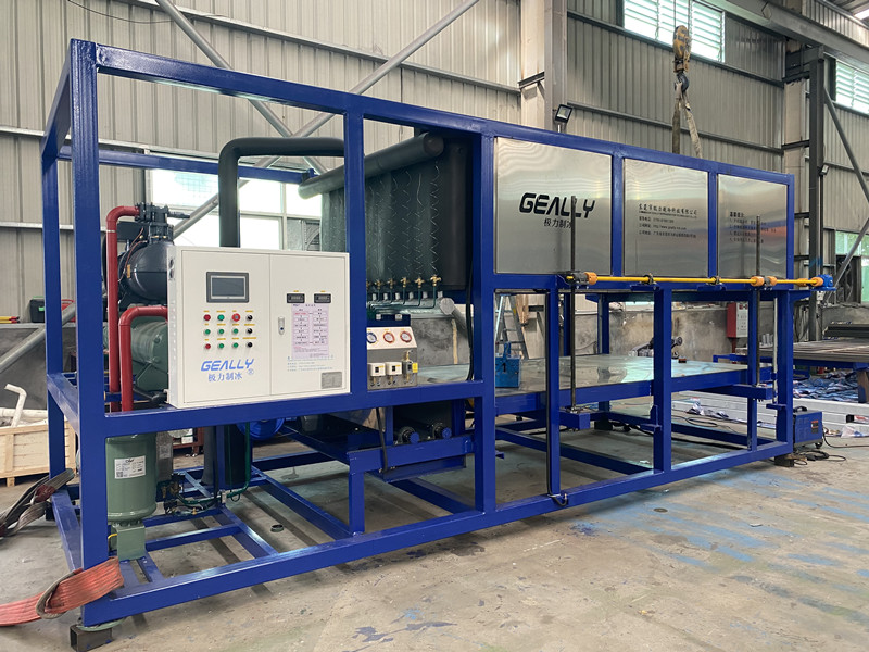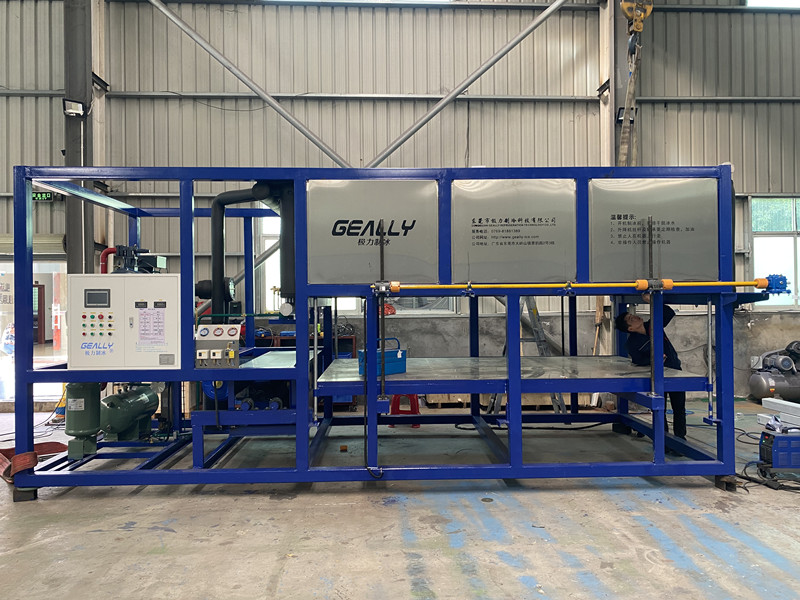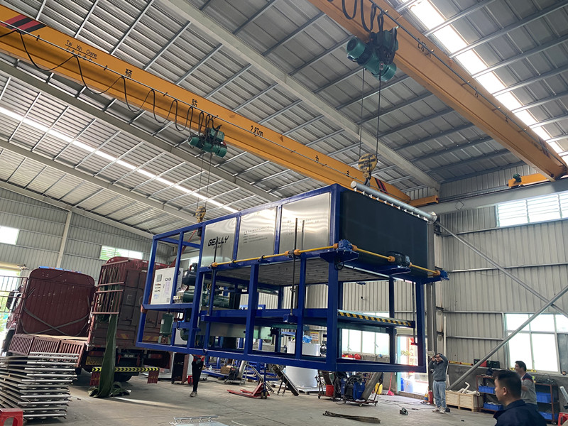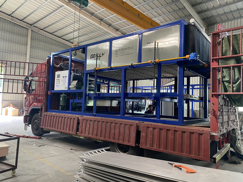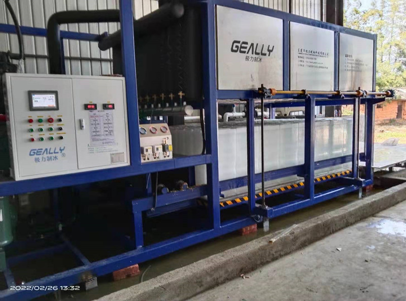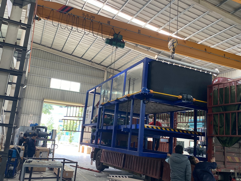 極(ji)力制(zhi)冷日產8噸(dun)直冷式塊(kuai)冰機發貨云南省(sheng)楚雄,冰塊(kuai)50公斤,帶推(tui)冰機